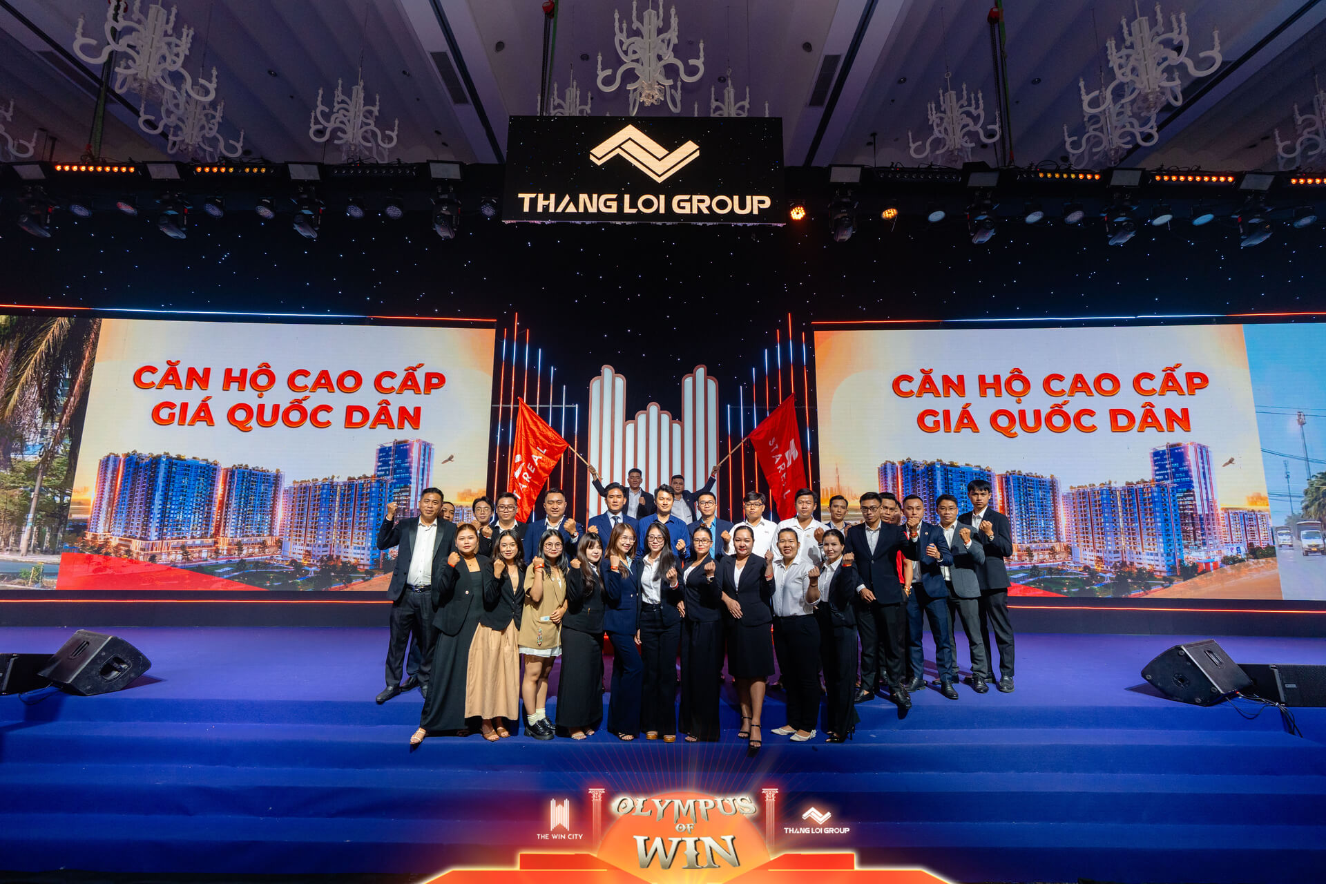 2.000 “chiến thần chốt deal” được chìm đắm trong không gian nghệ thuật với nhiều tiết mục mới lạ, các thông điệp ý nghĩa về dự án được đưa vào một cách nhẹ nhàng, vui tươi và dễ hiểu. Ban nhạc Fband trình diễn nhiều ca khúc với chủ đề chiến thắng – giống như thông điệp chủ đầu tư gửi tới thị trường, đại lý, đội ngũ kinh doanh. “Với The Win City – Khách hàng sở hữu sống vươn tầm, đại lý bán hàng cùng vươn xa, kinh doanh bán hàng cùng chiến thắng. Nơi mỗi người có một sứ mệnh, nhưng tựu chung cùng mang lại ngôi nhà đầu tiên – ngôi nhà chiến thắng cho 1 triệu gia đình trong nội đô sở hữu được căn nhà chất lượng với mức giá phải chăng”.